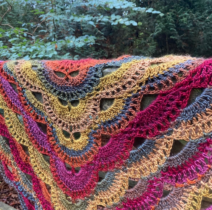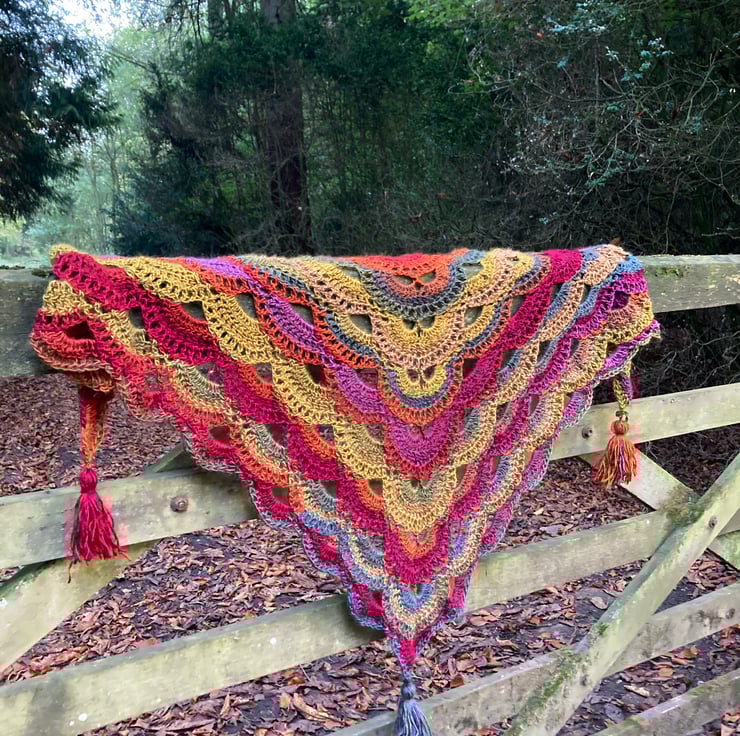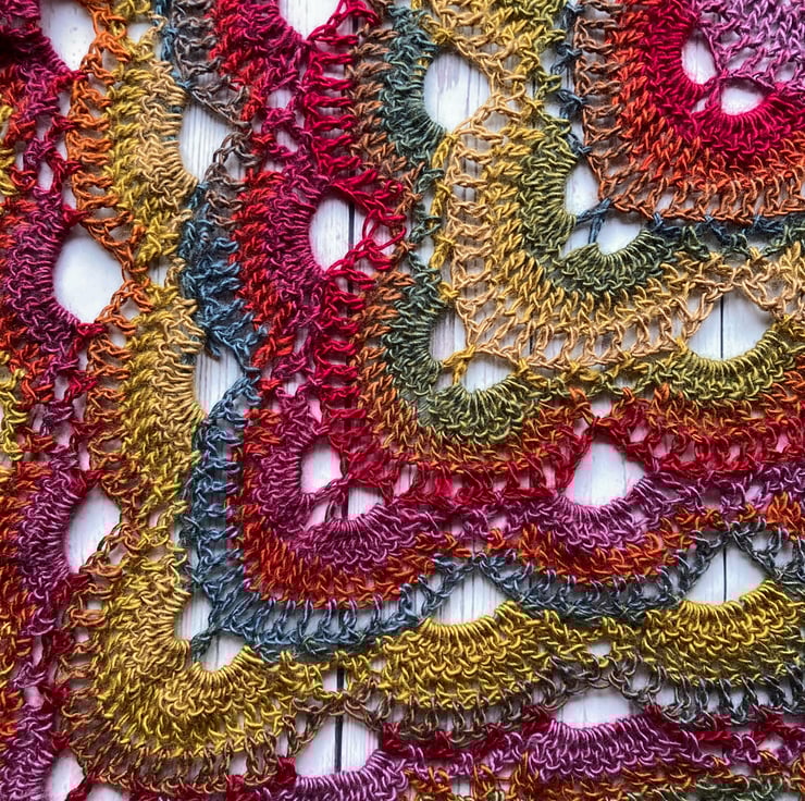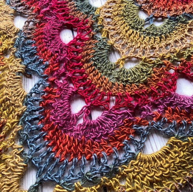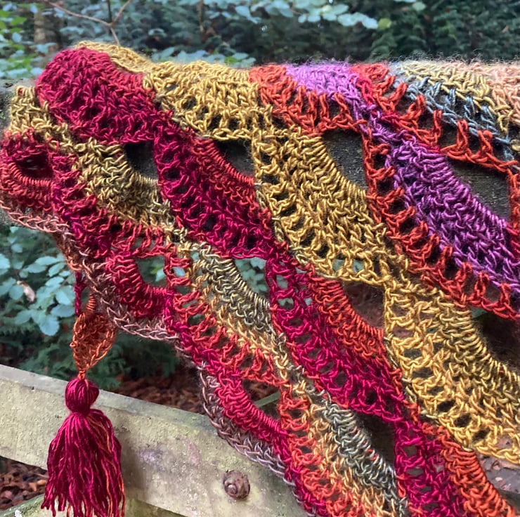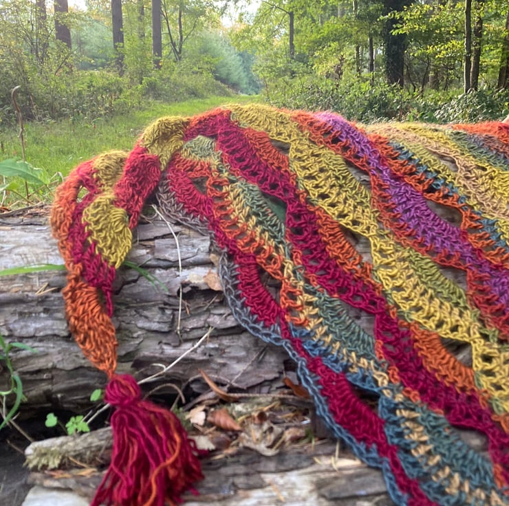 Beautifully soft and drapey scarf made with acrylic Boho spirit yarn in shade Folk.