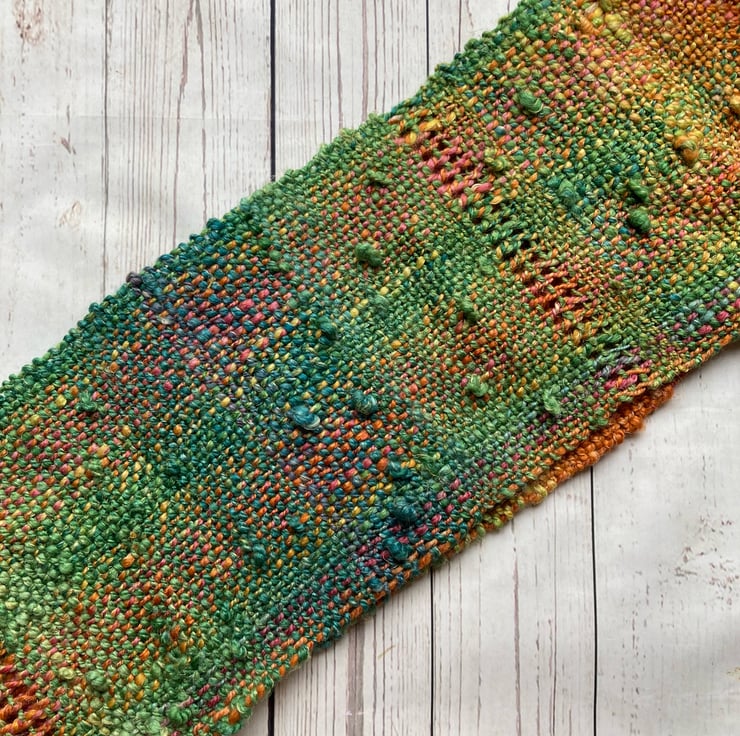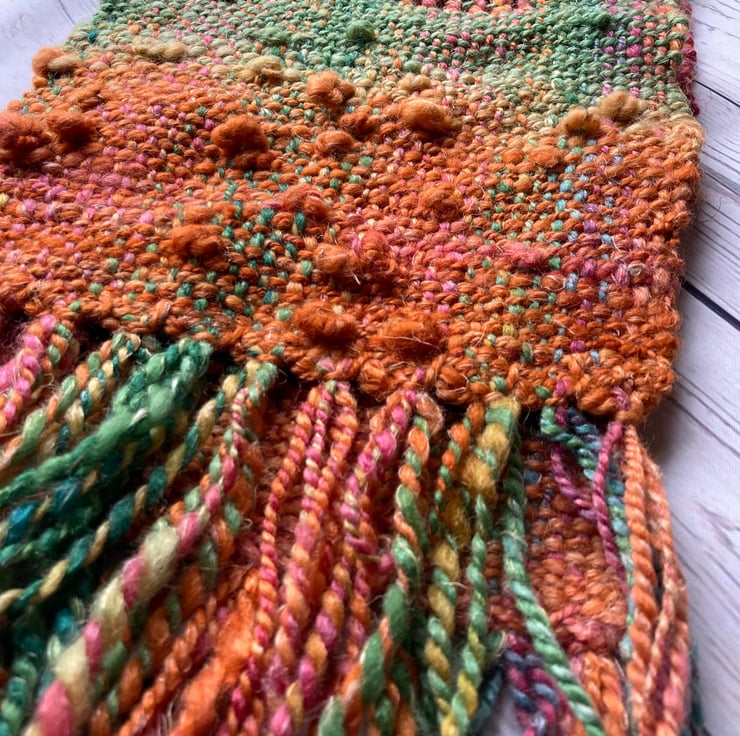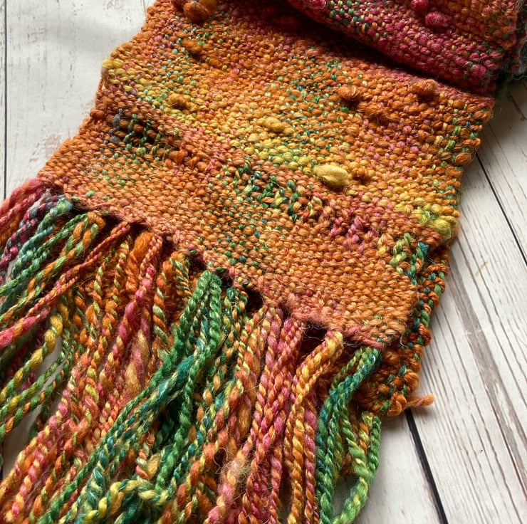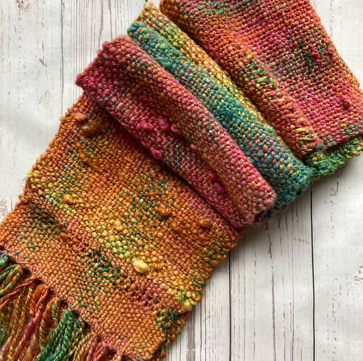 Woven scarf, Hand dyed, spun Autumn comes early