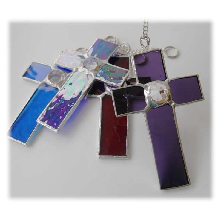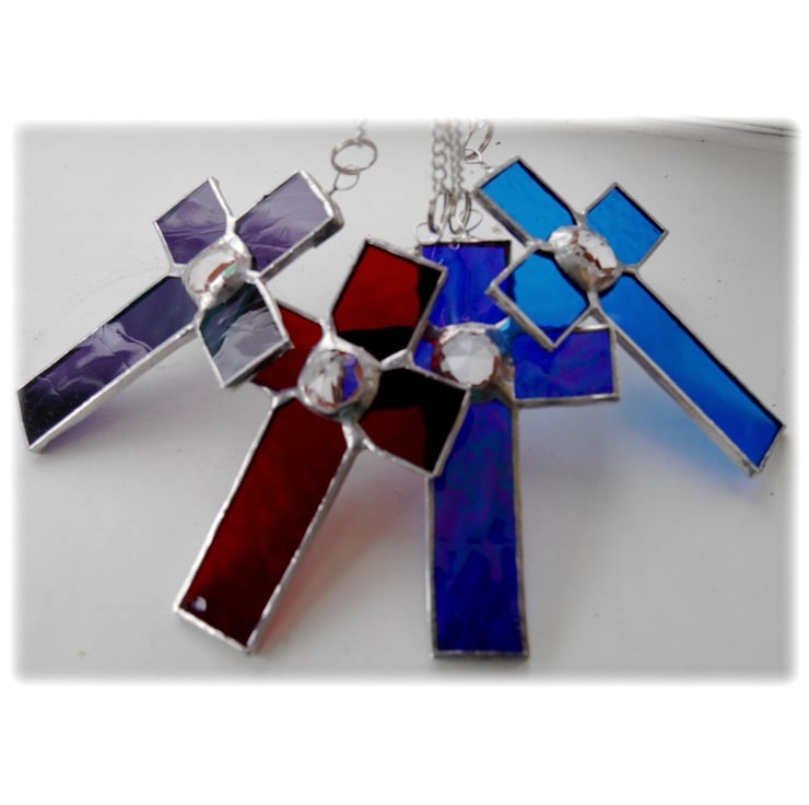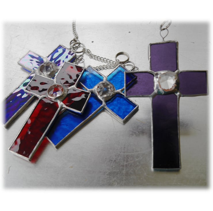 The 3rd to 5th photos show this cross with another 3 of this design. I have one each of red, purple, blue and sky blue all available here as separate listings.