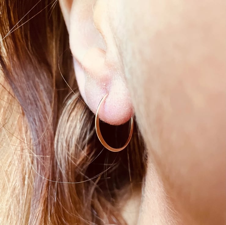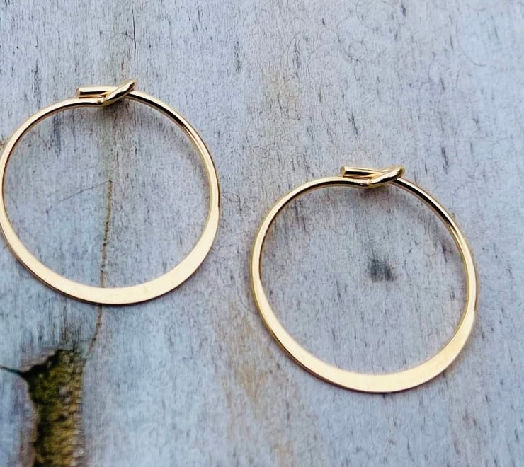 Very pretty hammered flat hoop earrings made with 14k gold filled. 15mm in size, Free gift box tied with ribbon.a flat thin style with a flattened edged. Suitable for men and women. Light in weight so suitable for older girls and boys,