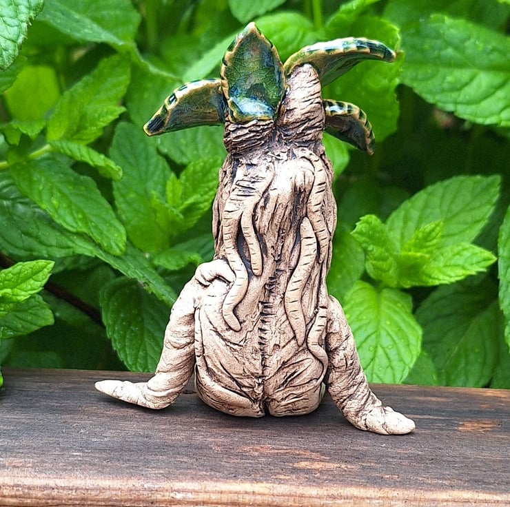 Melville Mandrake is a little shelf-sitting ceramic magical plant. He may be senior in years but he can still cause plenty of trouble! Melville has been finished in oxides to give an authentic earthy, rooty feel with vibrant green glossy glazed leaves.