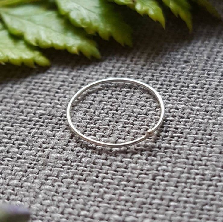 These earnose rings are made from 0.4mm half hard wire and are the thinnest on . The ring measures 8mm in diameter and is a comfortable fit for most nose piercings, if you are unsure this will fit you please measure from your piercing to the bottom of the nostril.