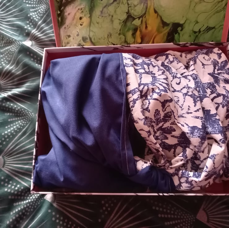 This is in a nice 2 tone finish with plain navy and floral pattern.