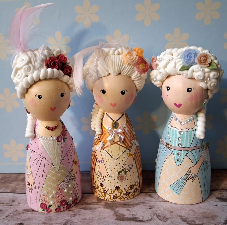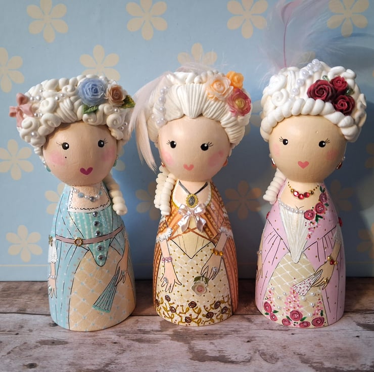 I love making Marie Antoinette, the sculpted hair and tiny detailing are my speciality. Available in pink or blue.