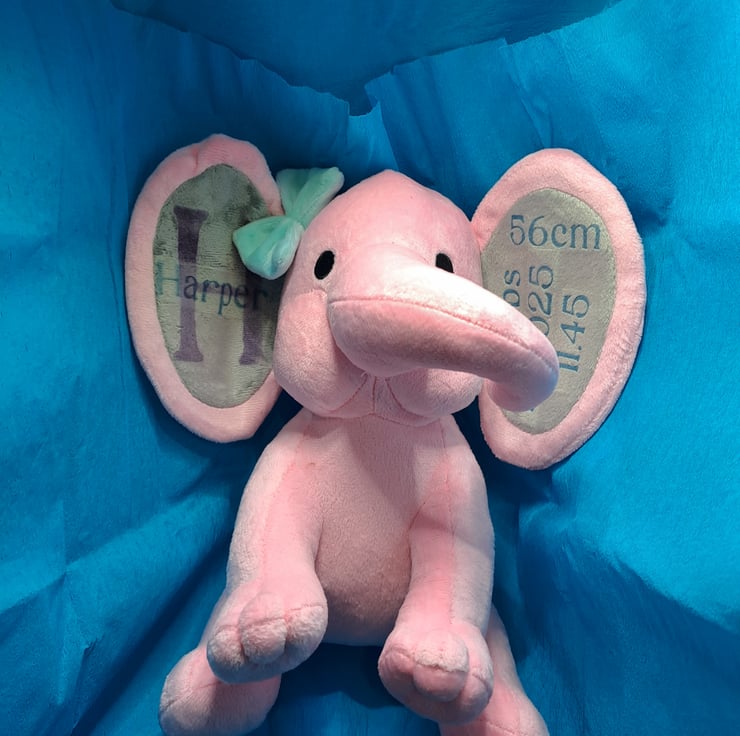 - Personalized Elephant Teddy: A cuddly keepsake with baby's name and birth information embroidered on its ears.
