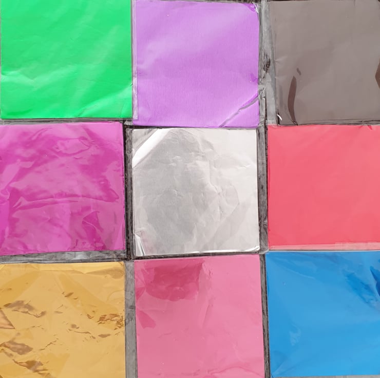 8cms x 8 cms - Colour 1 Side - Silver Reverse - Tin Foil Type Sheets