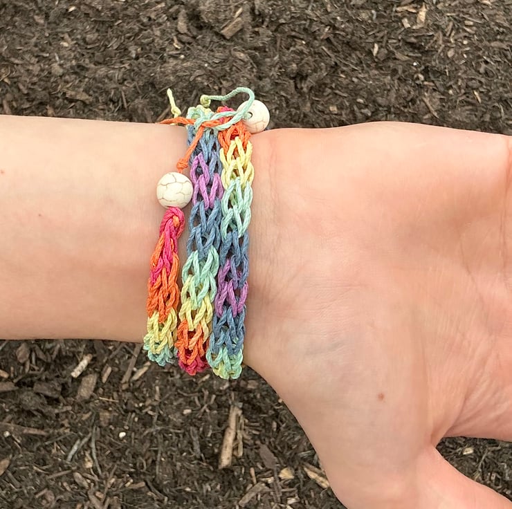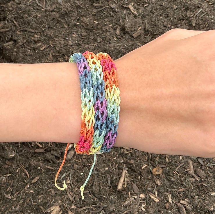 Hand Knitted Hemp Wrap Bracelet. Rainbow Bracelet.