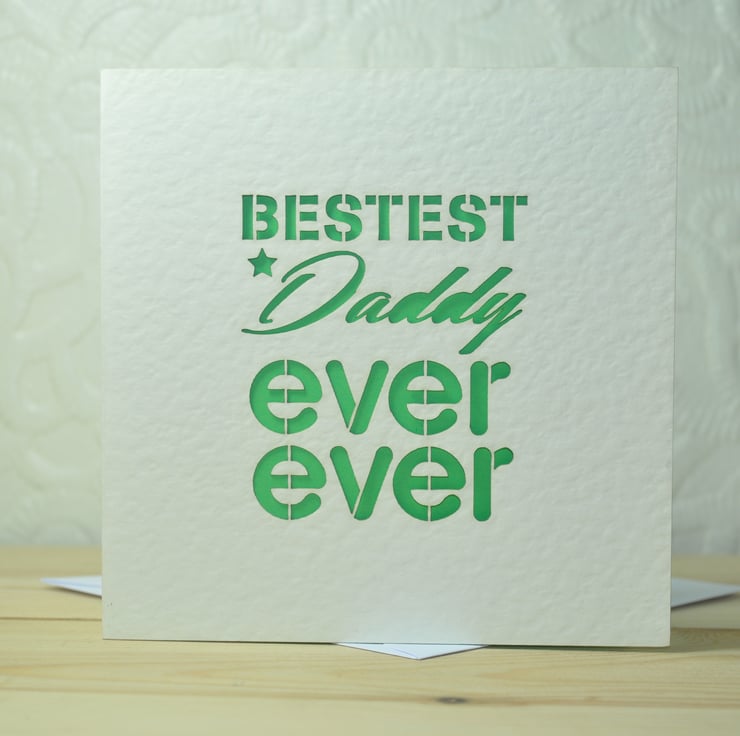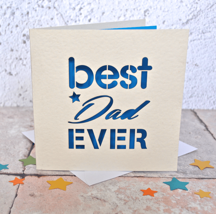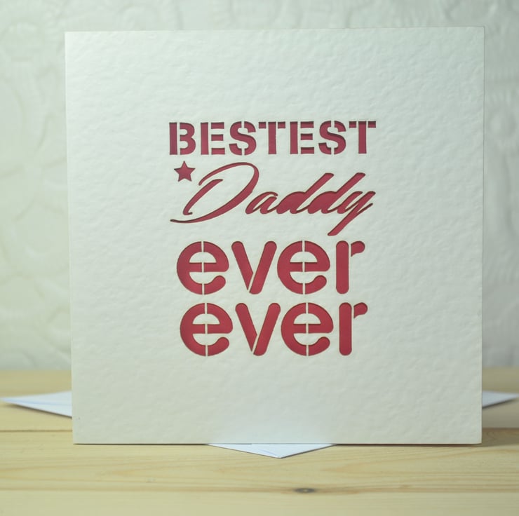 This laser cut 'Best Dady Ever' card comes complete with elegant script text and a little star to complete the card.