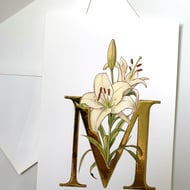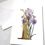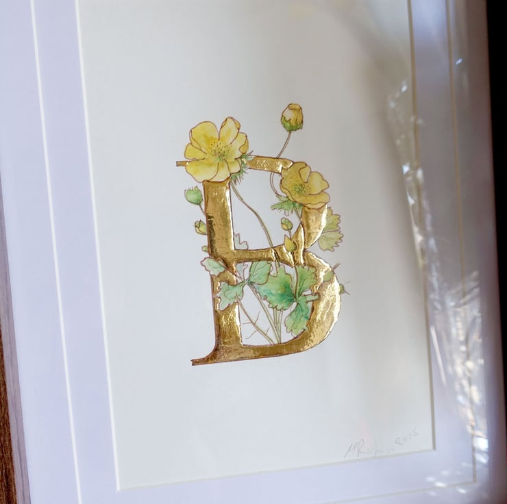 Small original watercolour art with 24 gold carat leaf letter B. This pieces comes ready framed with a double ivory mount.