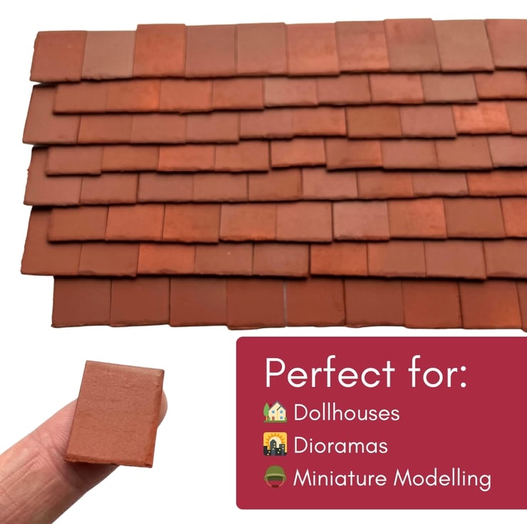 These 1:12th Scale Miniature Roof Tiles will bring your dollhouse, scale modelling, and diorama projects to life. Unlike real slate tiles, these styrene tiles won’t break or snap.