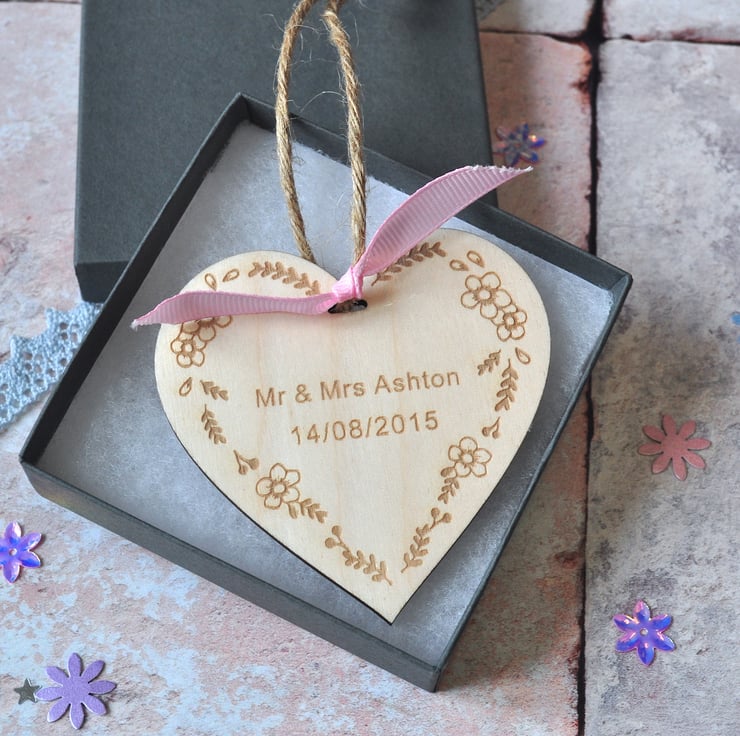 This personalised laser cut rustic heart decoration is the perfect keepsake for that special occasion.