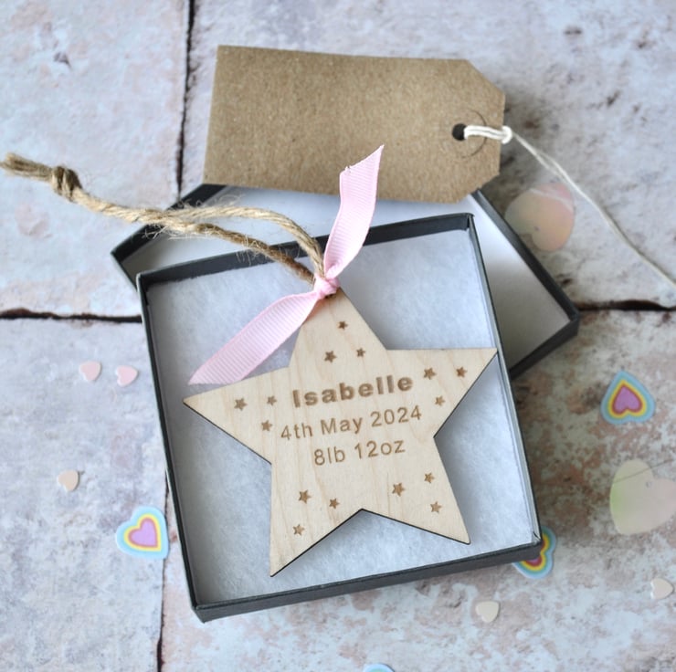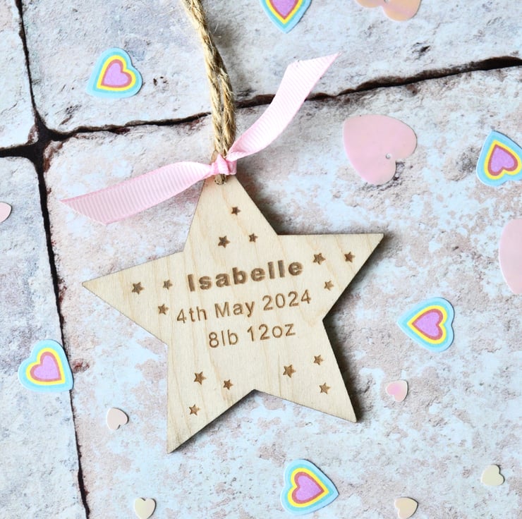 Each personalised wooden star will vary due to it being individually engraved and sanded by hand making these even more unique and one of a kind. Each star is laser cut from a high quality plywood and personalised just for you.