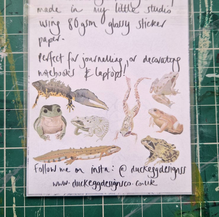Frog, newts and toad stickers designed by me and made in my little studio using 80gsm glossy sticker paper.