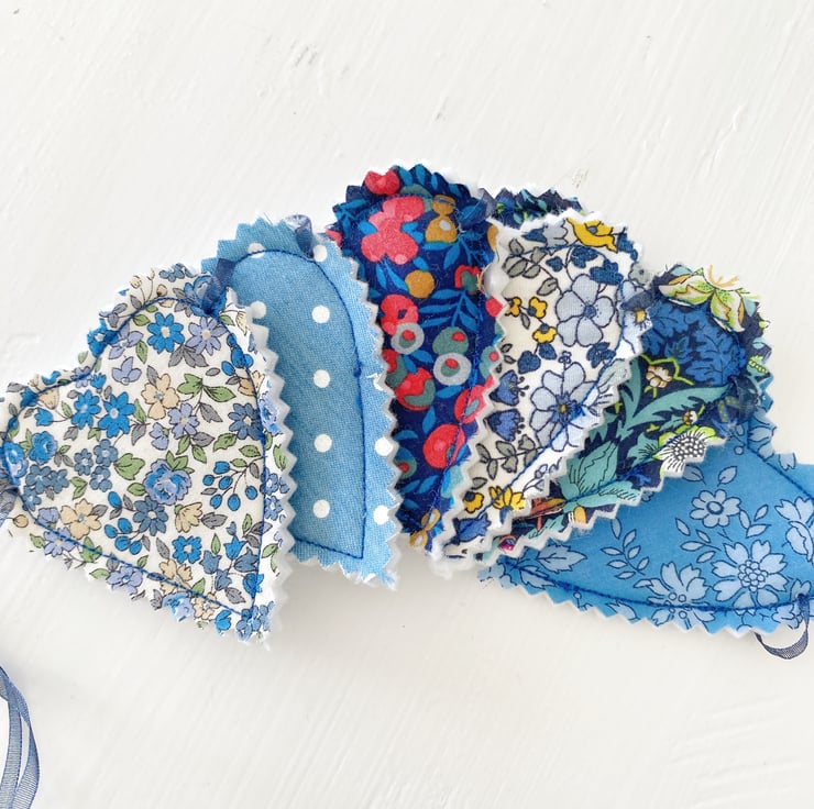 A gorgeous gift idea, six hearts backed with a wool/viscose mix felt and strung together with a delicate blue ribbon.