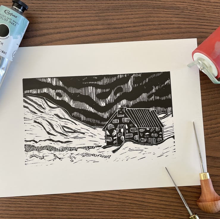 A wooden magnet made on 3mm maple plywood which measures 7 x 7cm square. The image of the bothy is taken from one of my original lino prints which has been digitally edited and then laser etched onto the wood. After it has been hand finished with 2 coats of a protective layer.