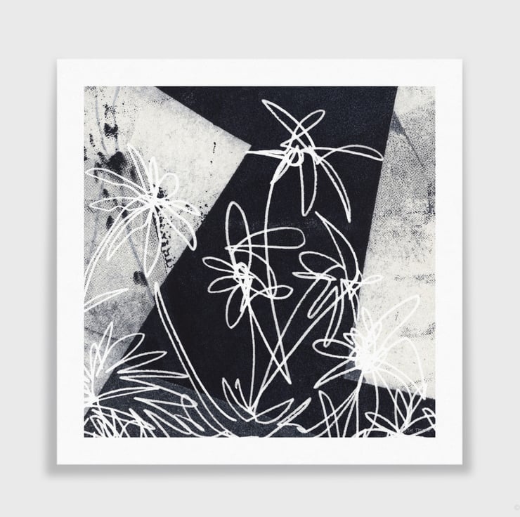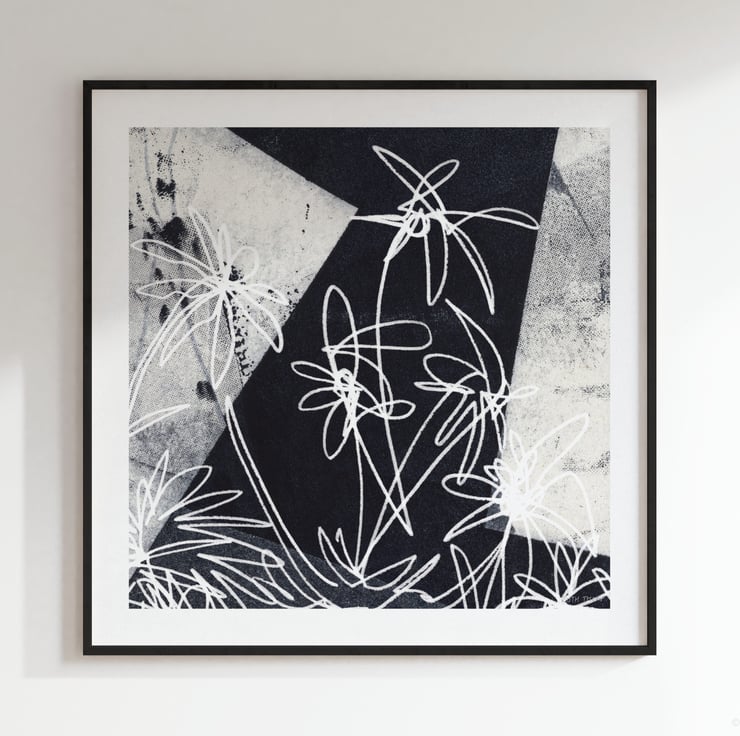 This abstract floral print, 'Planting Seeds 3', is part of my 'Abstract Moments Collection'. Created digitally with hand-drawn linework overlaid onto an original screen print.