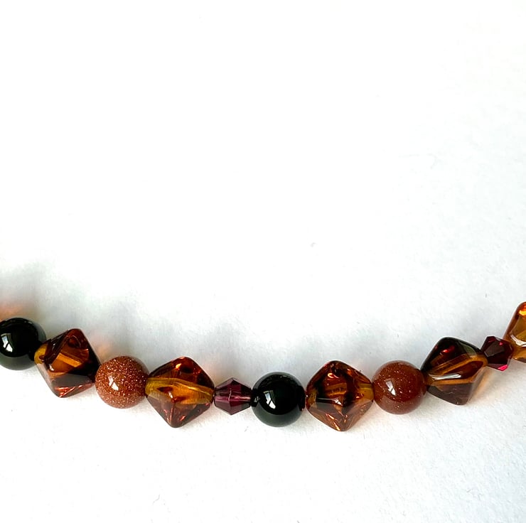 Necklace made from gemstone and glass beads in lovely contrasting shades of Amber and Black.