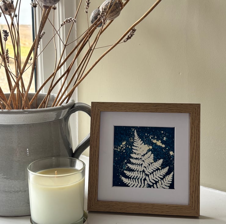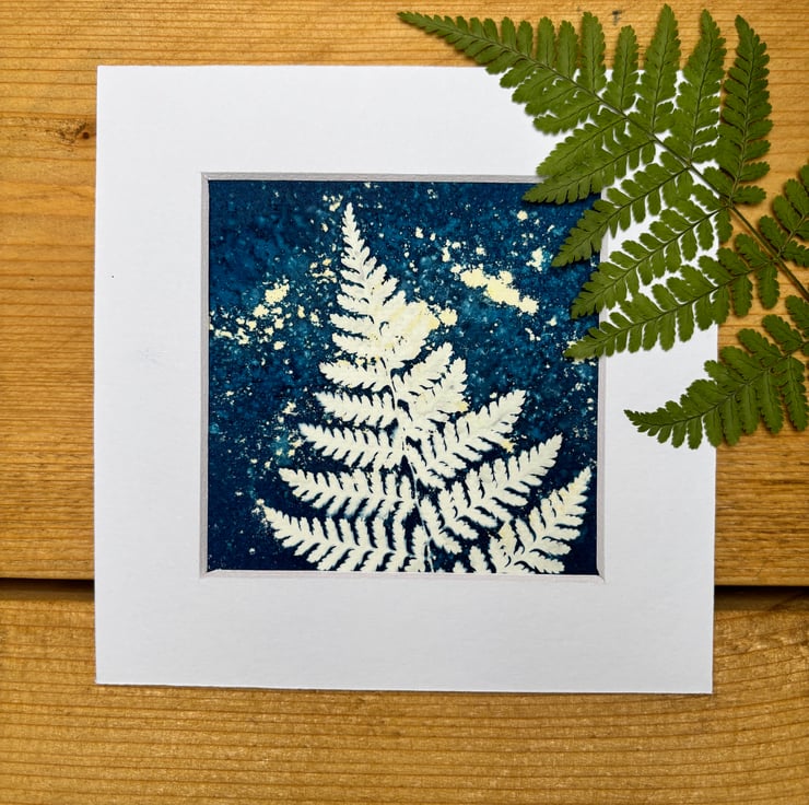 Bring a touch of nature into your home with this elegant fern print, created using the traditional wet cyanotype process.