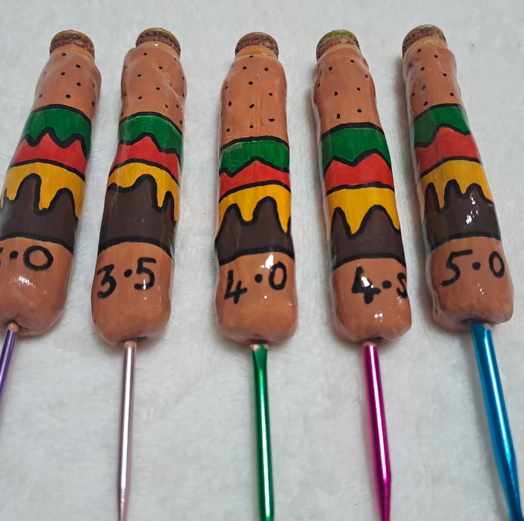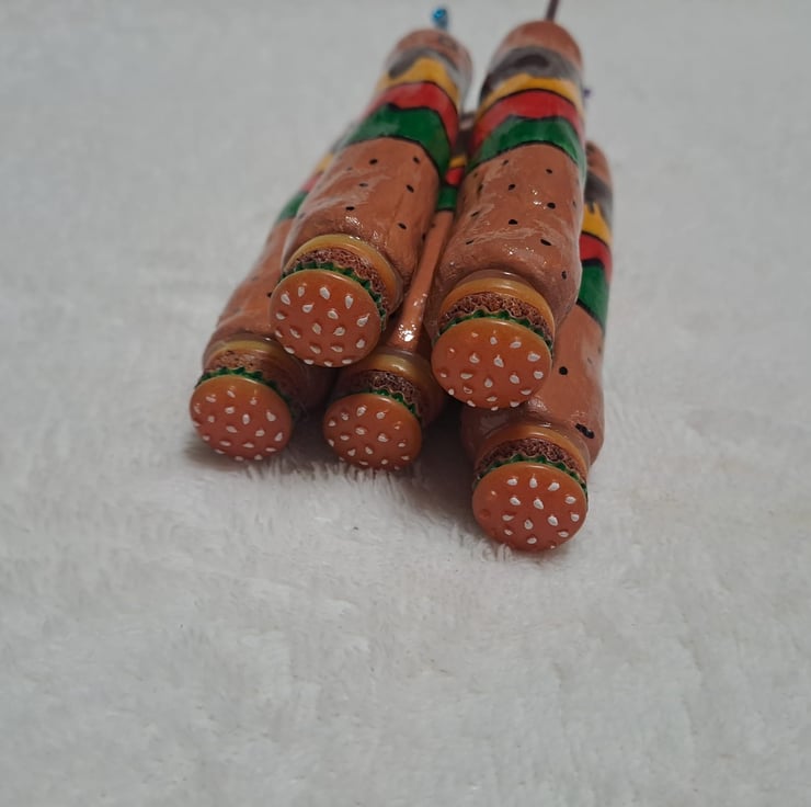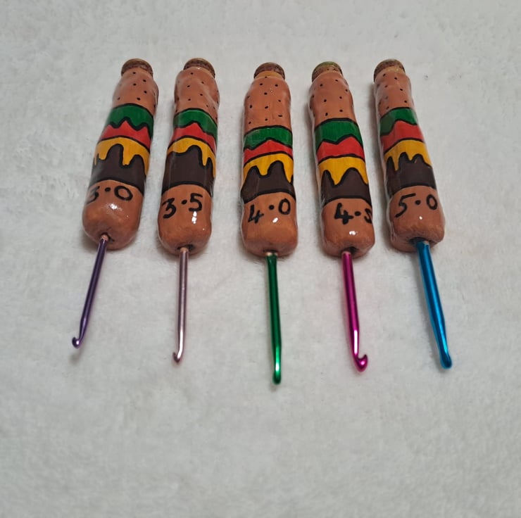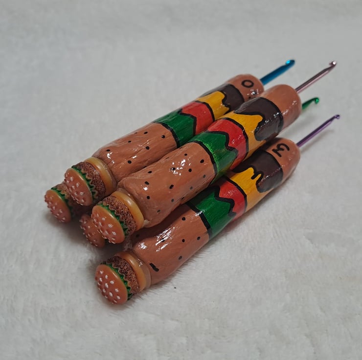 made with airdry clay ,painted with acrylic paint and varnished for a gloss finish. resign burger charm on top.