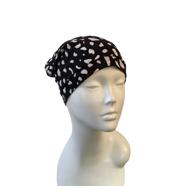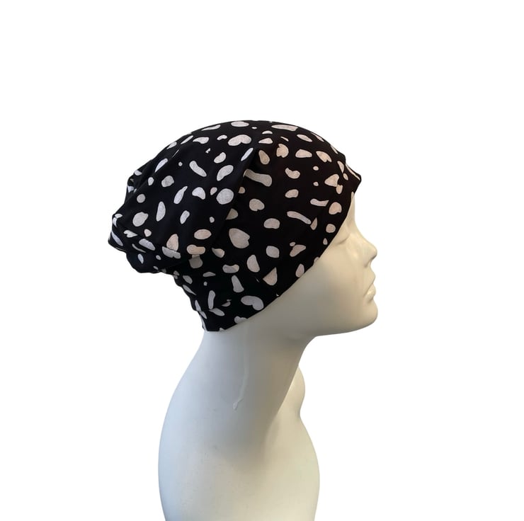 Add a pop of color and comfort to your wardrobe with this handmade jersey beanie hat, crafted from soft, stretchy cotton for the perfect slouchy fit. Each beanie features vibrant patterns and cosy materials that are gentle on your skin and easy to wear all day long.