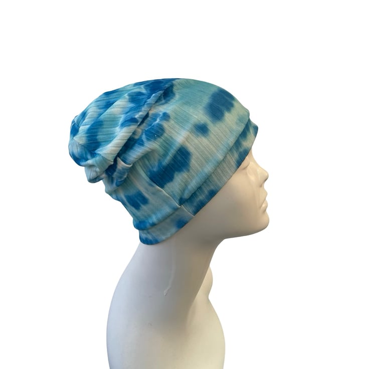Add a pop of color and comfort to your wardrobe with this handmade jersey beanie hat, crafted from soft, stretchy cotton for the perfect slouchy fit. Each beanie features vibrant patterns and cosy materials that are gentle on your skin and easy to wear all day long.