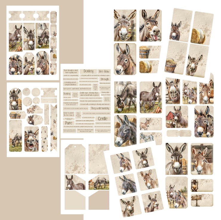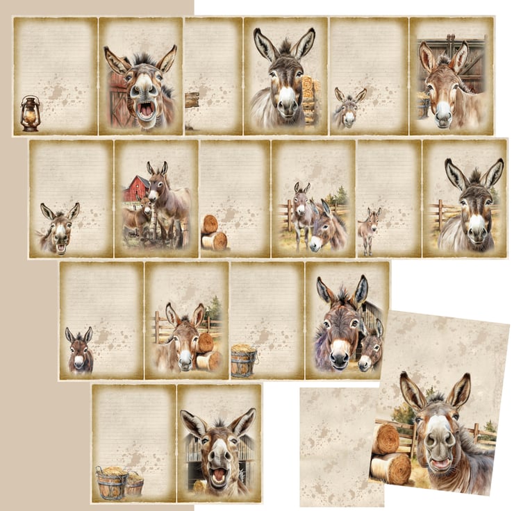 Donkeys Scrapbooking, Ephemera, Journal, Digital Download