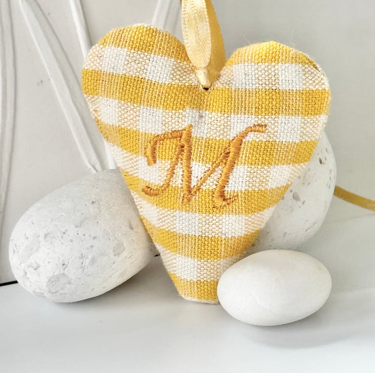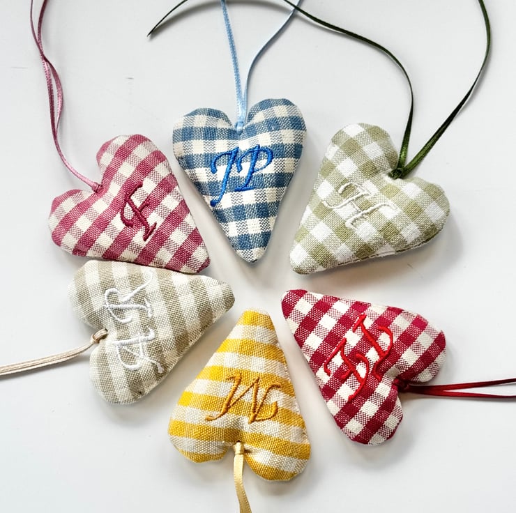 Personalised gingham heart decorations - perfectly sized to say thank you, I love you, to celebrate a marriage, to toast a partnership, to send in sympathy, to remember a loved one ...