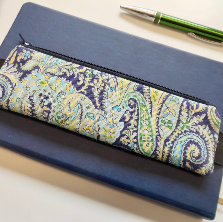 Elasticated pencil case for cover of book diary journal Liberty paisley fabric