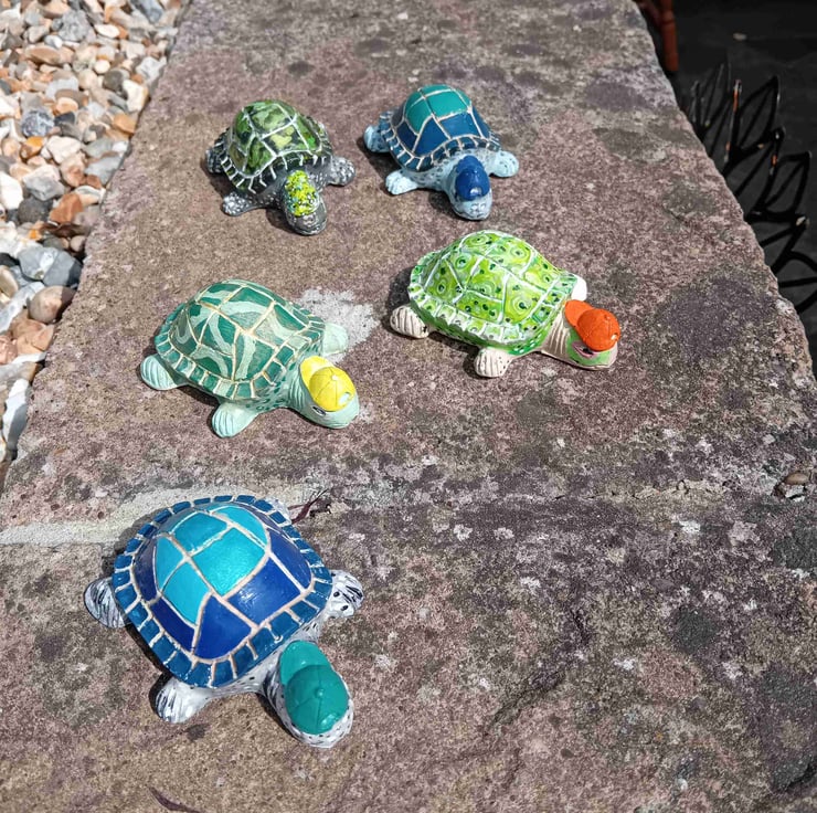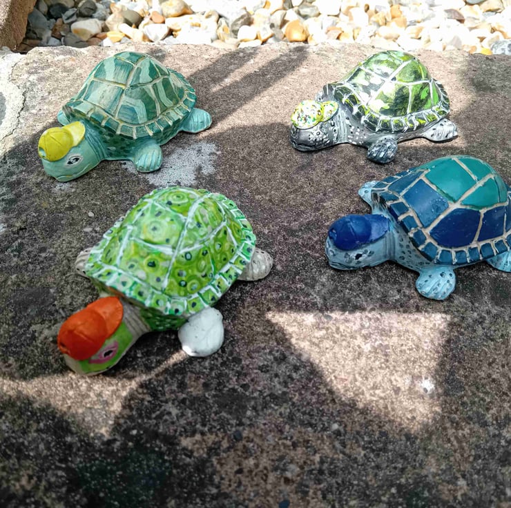 Cute little turtle ornament sporting a baseball cap. These lovely figures come in a variety of colours and can be customised to order.