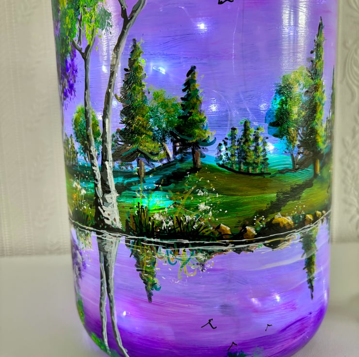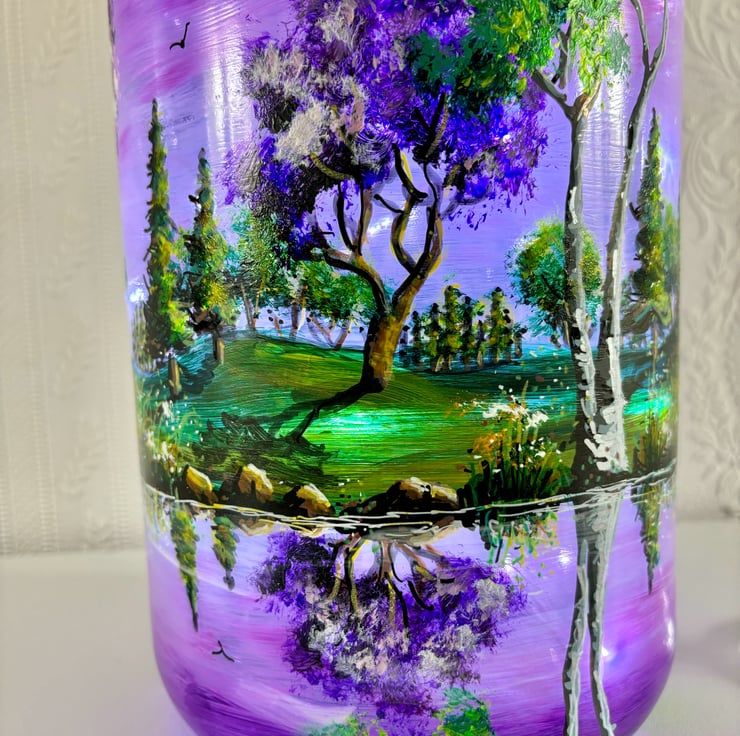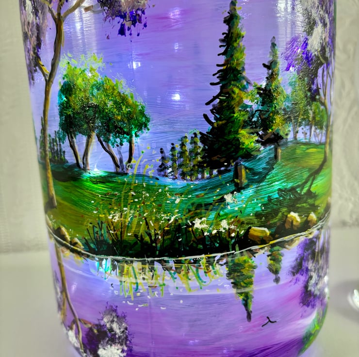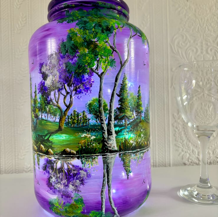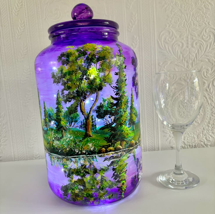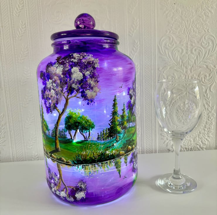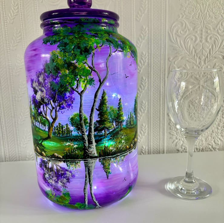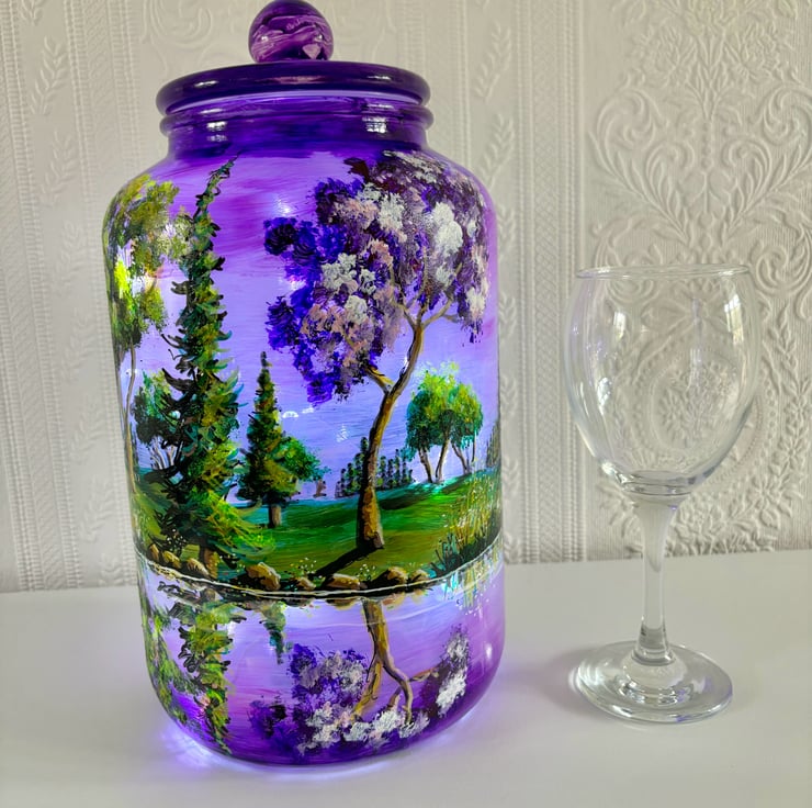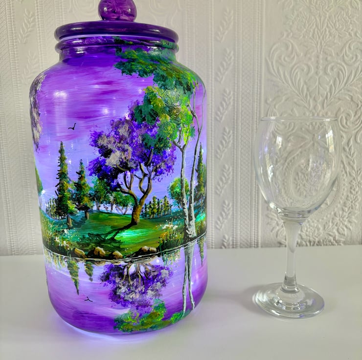 A large hand painted and fired glass piece with glass lid by Andrew Jenkins