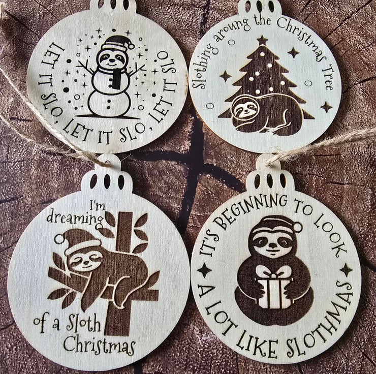 These unique design wooden baubles were inspired by my mum who has severe ME/CFS following Covid in October 2020. She is housebound and her activities are very limited, she spends her time listening to gentle music and watching the wildlife in the garden. She describes herself as a sloth as she has to do everything slowly, even thinking, and needs long rests in between any activities. More designs coming soon.