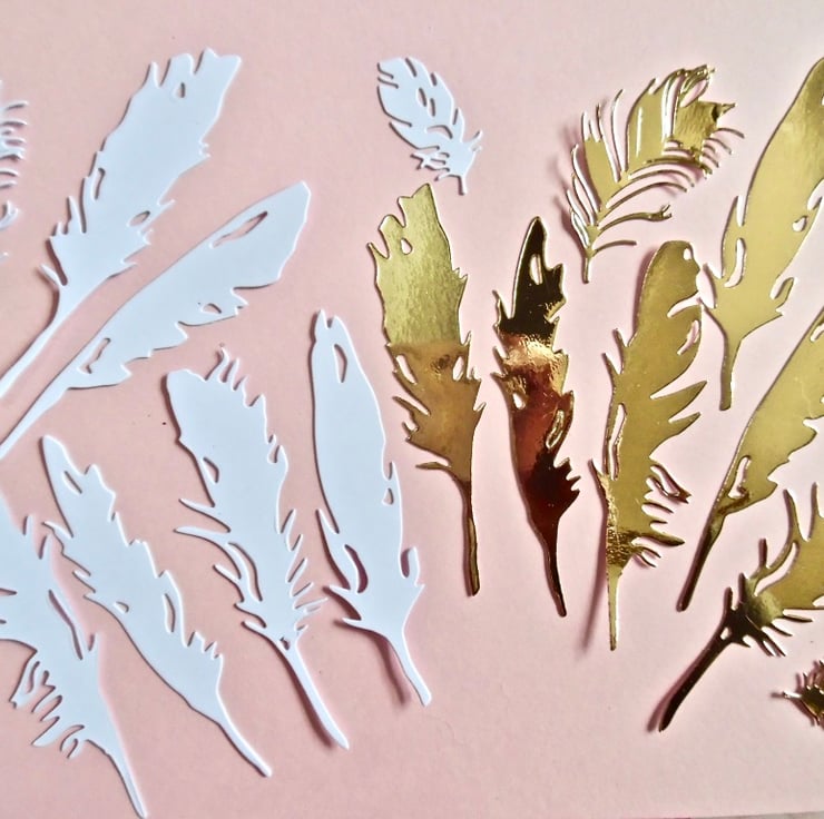 8 Feather Die Cuts. Card Toppers card making Craft Embellishments