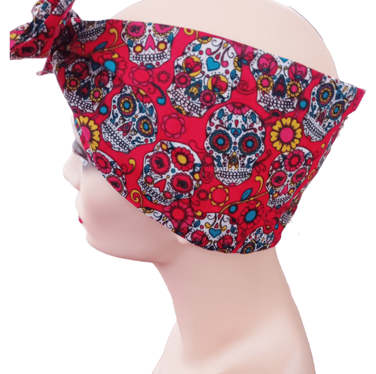 1950s Retro Rockabilly Headscarf Bandana Handmade Red Sugar Skull Print