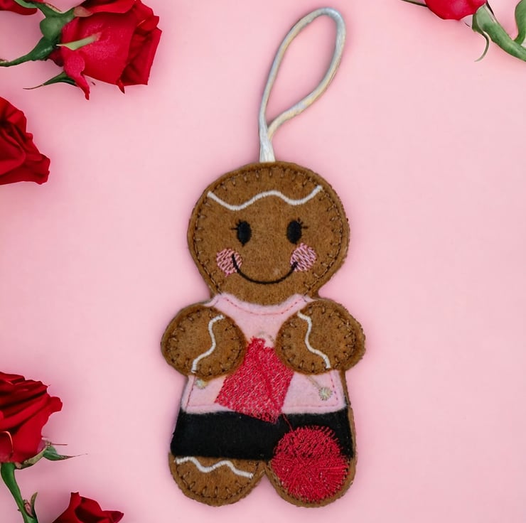 Handmade embroidered gingerbread lady.