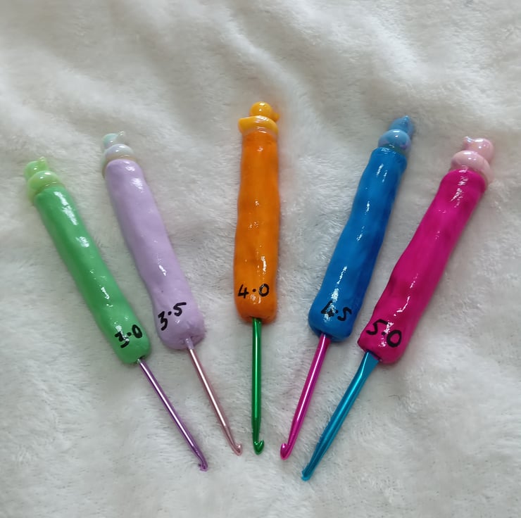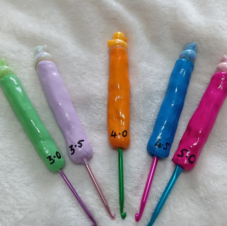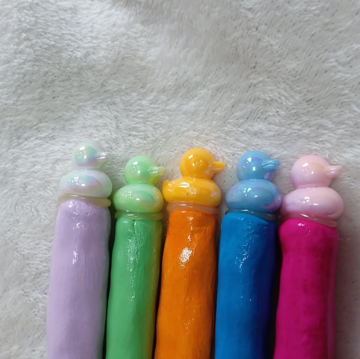 colourful aluminium airdry clay handle hooks handmade hand painted with gloss on top and duck charm on the top