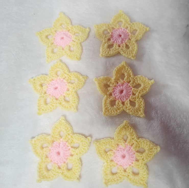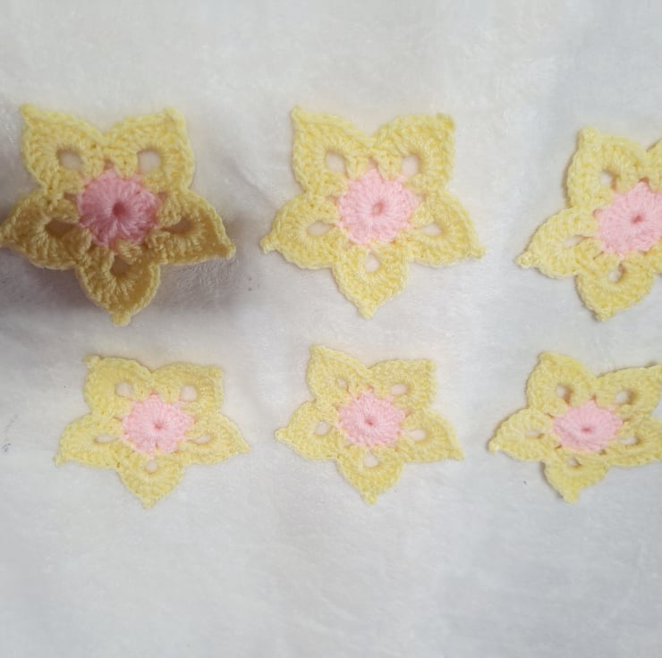 set of 6 crochet flower applique.