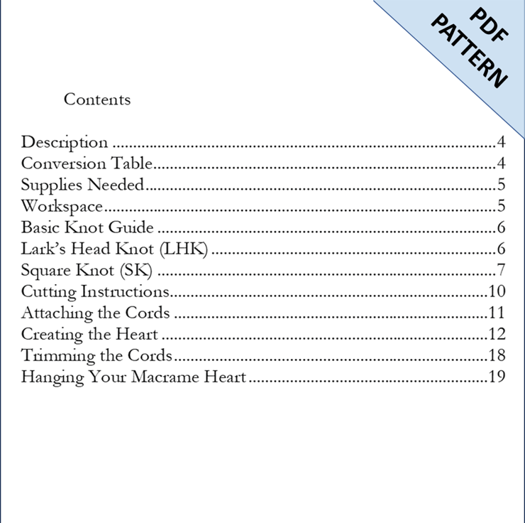 Macrame 'Heart' wall hanging pattern. This design is a perfect project for beginners and younger crafters. Approximate size once completed: H60cm, W20cm.