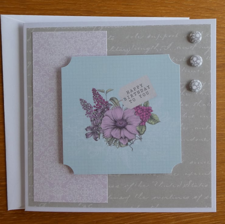 This birthday card has a floral image in soft neutral tones and the messages Happy Birthday To You and With Love.