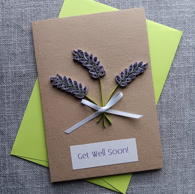 A sprig of lavender to say GET WELL it is a unique card. There will be no other card exactly the same because if and when I make this design again, there will be small variations in colours and shapes and it won't be 100% the same.