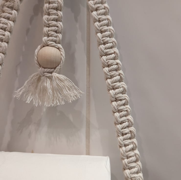 This unique macrame toilet roll holder is made from 100% cotton cord and is the perfect bohemian addition to your bathroom decor.