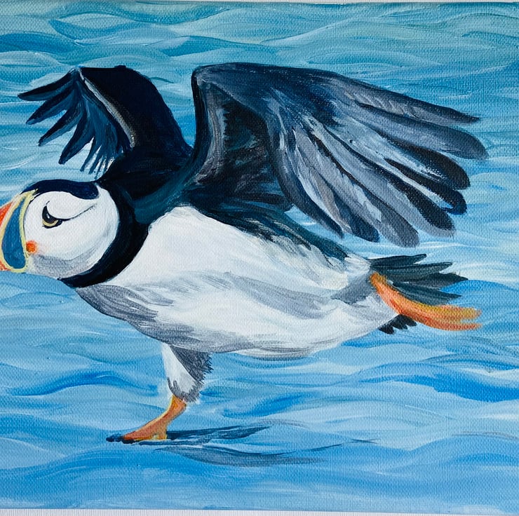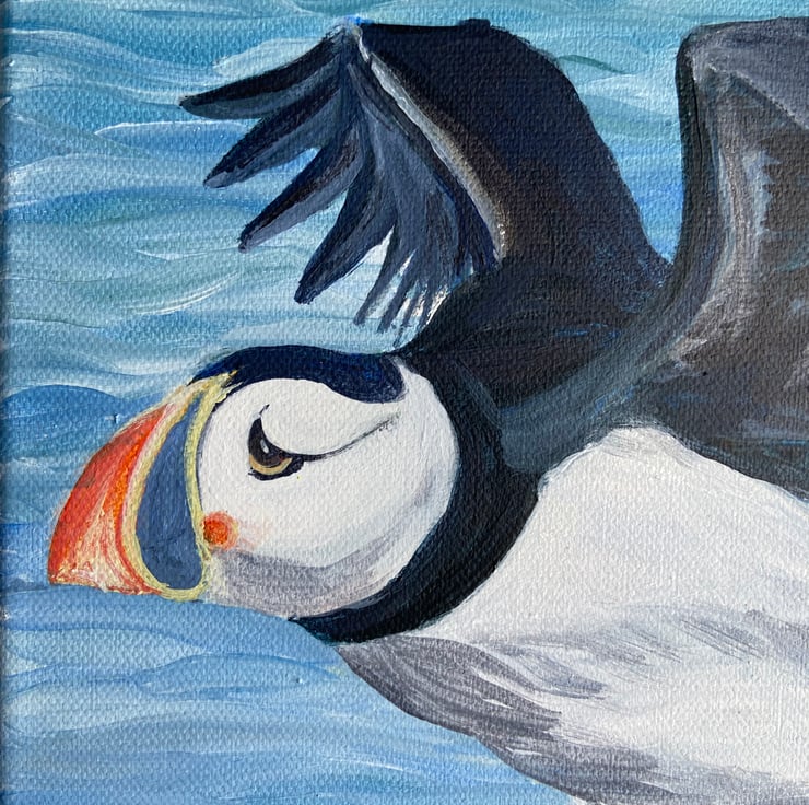 Inspired by my love of the colours and shapes found in nature. Having grown up on and around the water in Pembrokeshire, I love Puffins and am lucky enough to have watched these sweet little birds enjoying their Spring and summers on the shores of Skomer Island. I just love them.