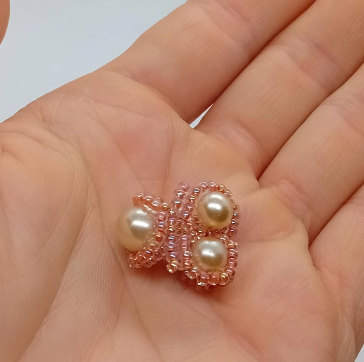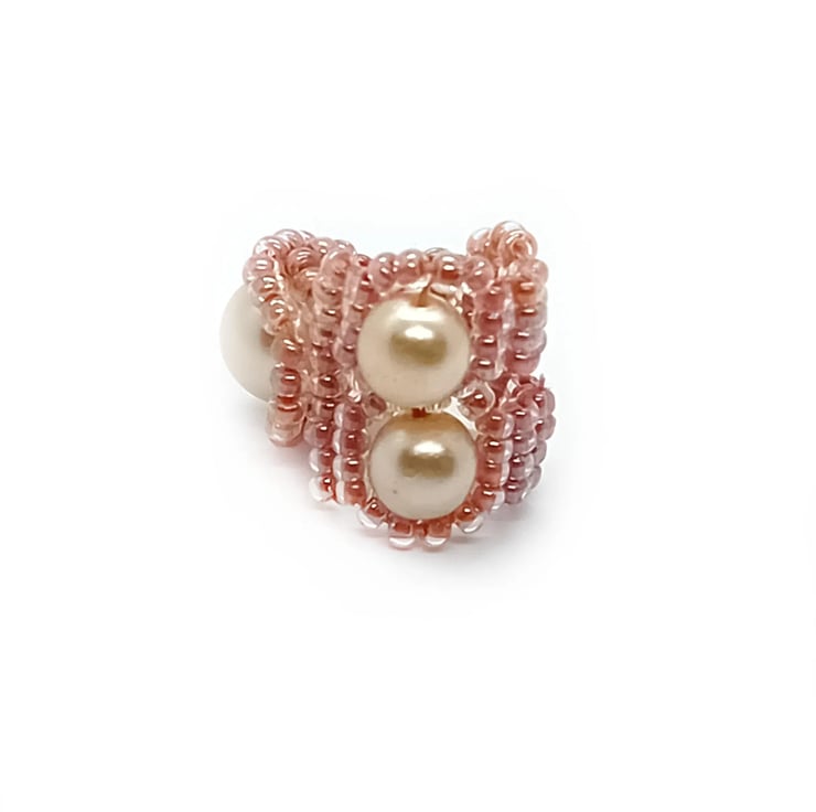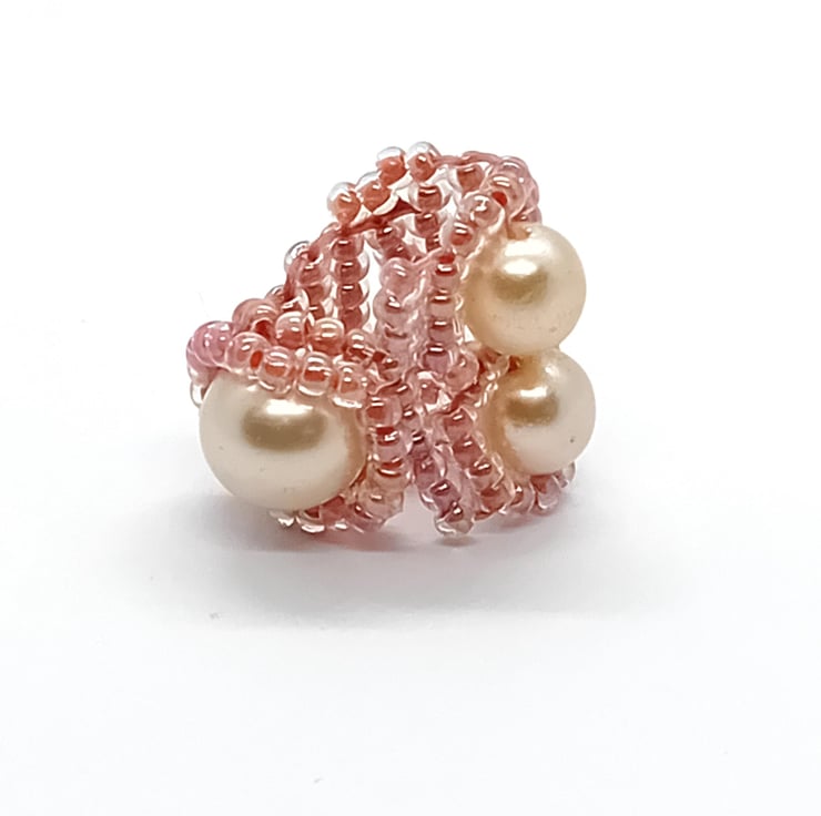 I have a stash of faux-pearl beads and was inspired to freeform this one when I found these beautiful peach beads that just compliment the pearls perfectly.