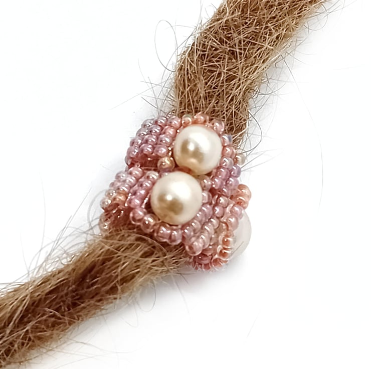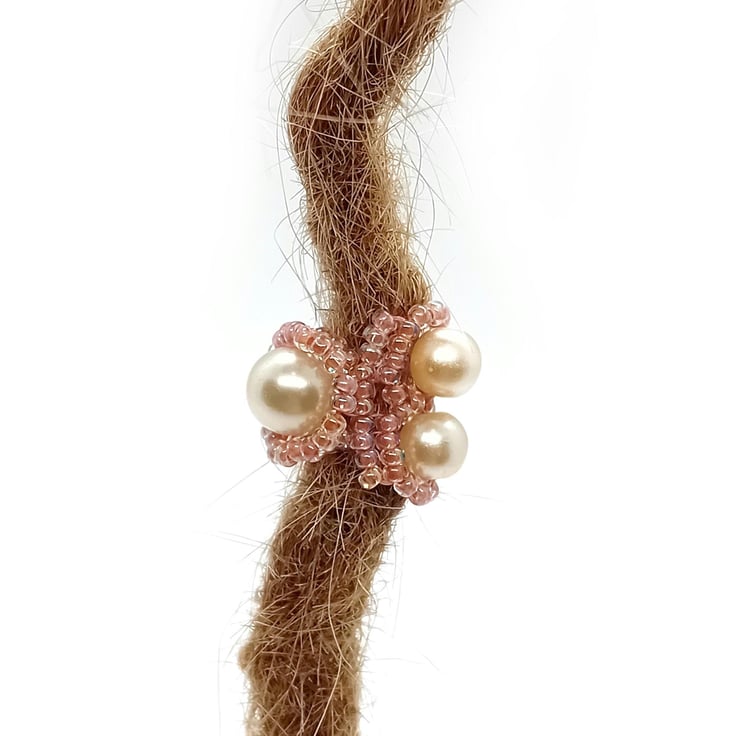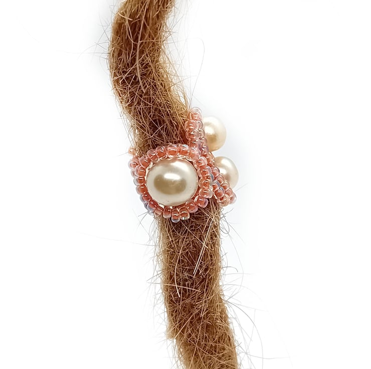 One of a kind handmade dreadlock bead – Shimmering Peach and Faux Pearl
