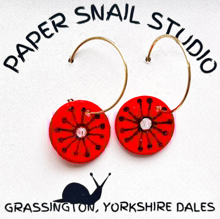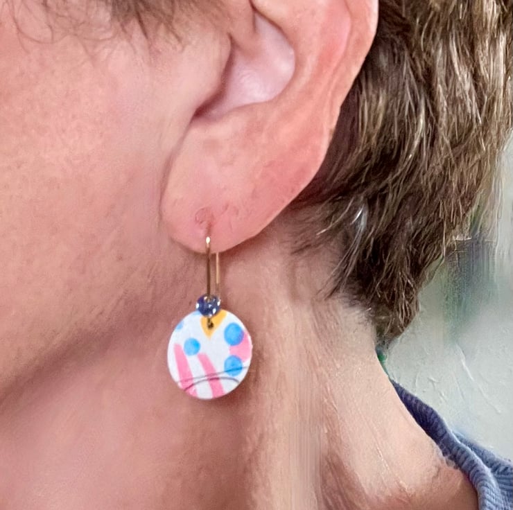 My medium circle dangle earrings made of circles of watercolour paper painted in fun colourful designs. Individually created and painted so no two are identical.