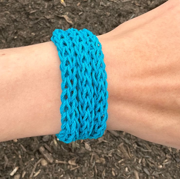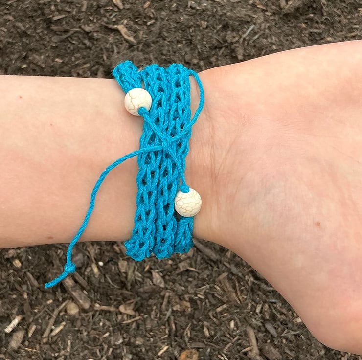 Hand Knitted Hemp Wrap Bracelet. Bright Blue Bracelet.