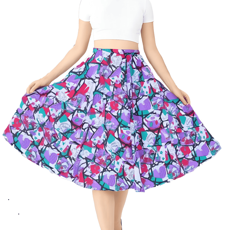 Handmade in Wales 1950s Vintage retro rockabilly full circle skirt, elasticated waist This skirt is made in a polycotton comic print. It will fit multi sizes dues to the elasticated waist. 28" Long from top of waistband.