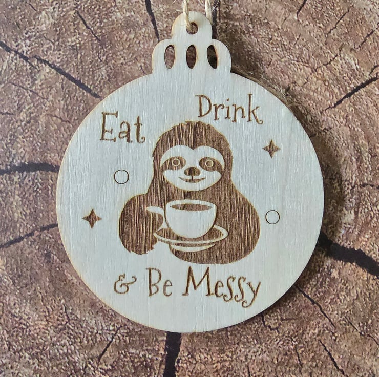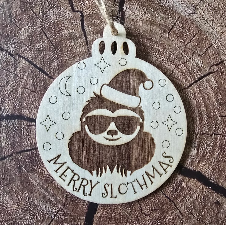 These unique design wooden baubles were inspired by my mum who has severe ME/CFS following Covid in October 2020. She is housebound and her activities are very limited, she spends her time listening to gentle music and watching the wildlife in the garden. She describes herself as a sloth as she has to do everything slowly, even thinking, and needs long rests in between any activities.