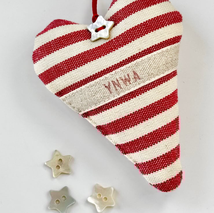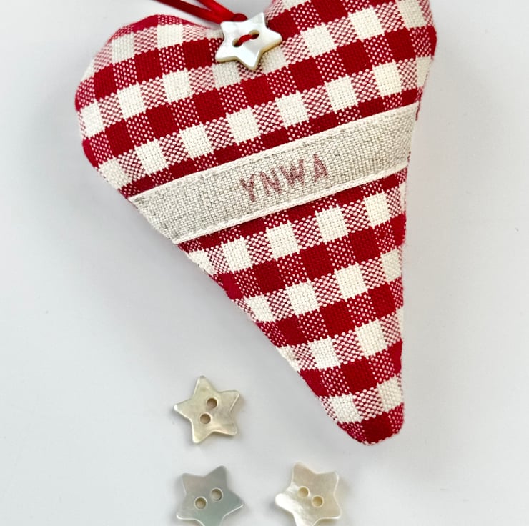The YNWA Celebration Heart comes in either red and white gingham or red and white stripes, with a linen band bearing the famous "You'll Never Walk Alone" legend. And each proudly and lovingly made heart is filled with lavender or wool stuffing, and is finished with a pearly star button and narrow red satin ribbon hanging ties.