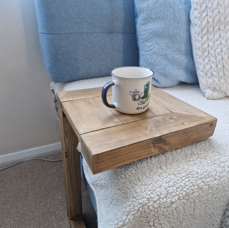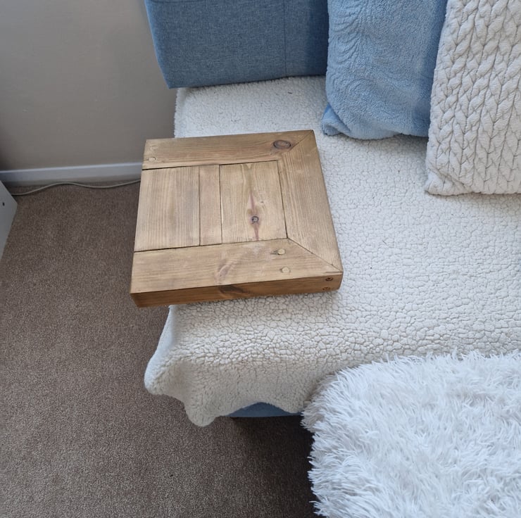 As my sofa doesn't have an armchair to put a tray for holding my cup or remote I've decided to build this functional side table