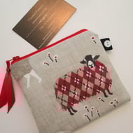 Make up bag / pencil case with contrasting zipper and ribbon and lining